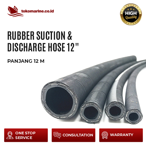 RUBBER SUCTION & DISCHARGE HOSE 12 INCHI - PANJANG 6 M Rubber Suction & Discharge Hose 12 Inchi - Panjang 6 m Rubber suction and discharge hose adalah selang karet yang di gunakan untuk saluran vakum dan bertekanan dalam aplikasi yang melibatkan pengisapan dan pembuangan air limbah, lumpur, dan limbah. Selang karet ini memiliki struktur dan sifat yang sangat fleksibel sehingga dapat digunakan dalam kondisi buruk. Bahan yang digunakan dalam pembuatannya tahan terhadap abrasi, bahan kimia dan korosi. Selang karet ini dapat digunakan untuk deflooding, penyedotan air limbah dalam pekerjaan konstruksi, pertambangan dan operasional dengan intensitas berat lainnya yang melibatkan pembuangan lumpur dan air limbah. Selang karet ini serat sintetis dan karet NBR (Nitril Butadiena) dan EPDM (Ethylene Popylene Diene Monomer) hitam untuk bagian dalam selang sehingga tahan abrasi dan aman apabila di aplikasikan untuk media minyak, oli mineral dan petroleum. Untuk penguatan selang karet ini di support dengan high tensile fiber cotton yarn braids dengan satu kawat helix yang tertanam. Untuk bagian luar dilapisi karet sintetis yang tahan terhadap abrasi. Selang karet ini dapat beroperasi pada range temperature -20 sampai 85 deratat celcius. SPESIFKASI RUBBER SUCTION & DISCHARGE HOSE 12 INCH - PANJANG 6 M Size : 12 Inchi In Diameter : 300 mm W.P : 10 Bar = 150 Psi B.P : 30 Bar = 450 Psi Length : 6 m Weight : 116.4 Kg -